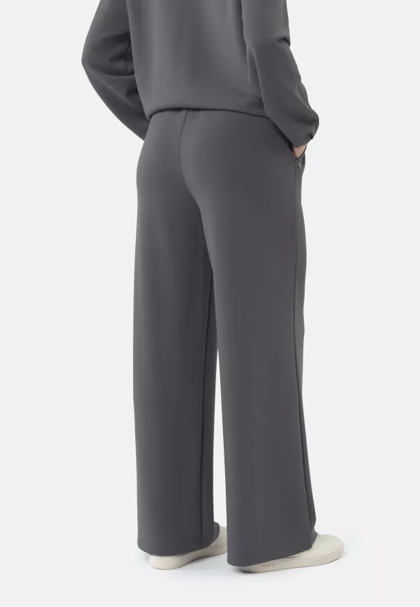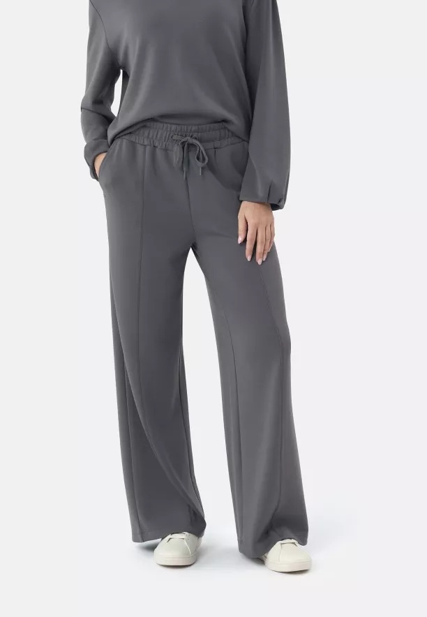 Grafitové tepláky N-ERLA mají výjimečně pohodlný a módní střih. Jsou to tepláky s širokými nohavicemi, které neomezují v pohybu, dobře splývají a jsou mimořádně příjemné na dotek. To je především zásluha modalu, který ve složení těchto teplákových kalhot dominuje. Díky tomu jsou mimořádně měkké a hladké, a navíc jsou prodyšné a dobře absorbují vlhkost.