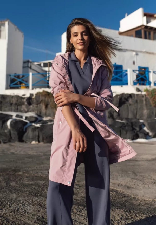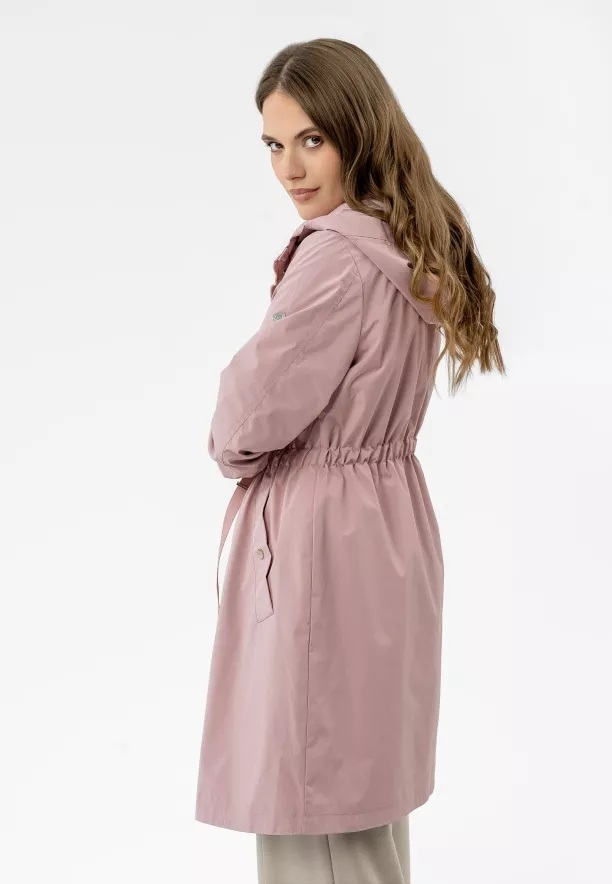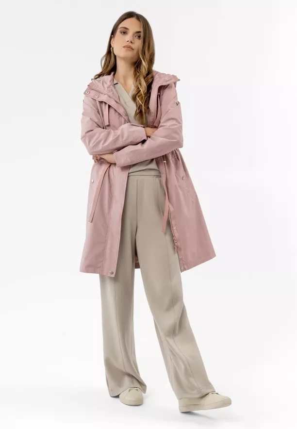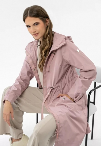 Konstrukce, která odlišuje tuto dlouhou dámskou bundu, byla navržena s ohledem na maximální funkčnost a přizpůsobení postavě. Klíčovým prvkem je stahování se šňůrkou v pase, které umožňuje zdůraznit pas nebo ponechat volnější, rovný střih v závislosti na vašich preferencích. Prostorná kapuce se šňůrkami a manžety regulovatelné patenty představují dodatečnou bariéru proti větru a dešti, zatímco dvoucestný zip pod légou na patenty zajišťuje plnou svobodu pohybu. Díky univerzálnímu střihu střední délky a praktickým kapsám – včetně jedné vnitřní – se tento kabát skvěle hodí jak do městských stylizací, tak na víkendové procházky.