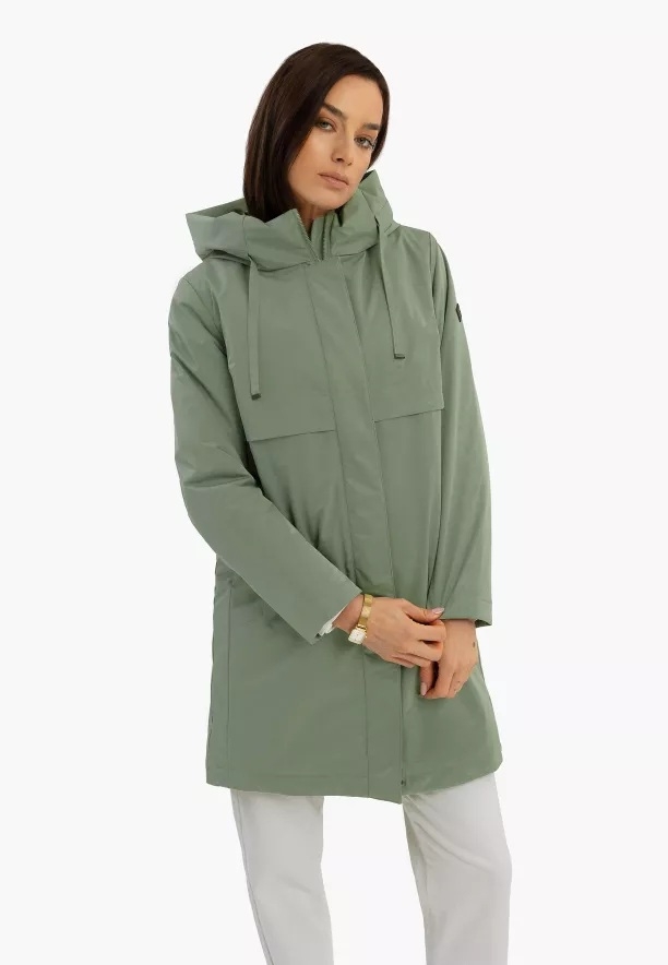 Dlouhá dámská bunda s kapucí
