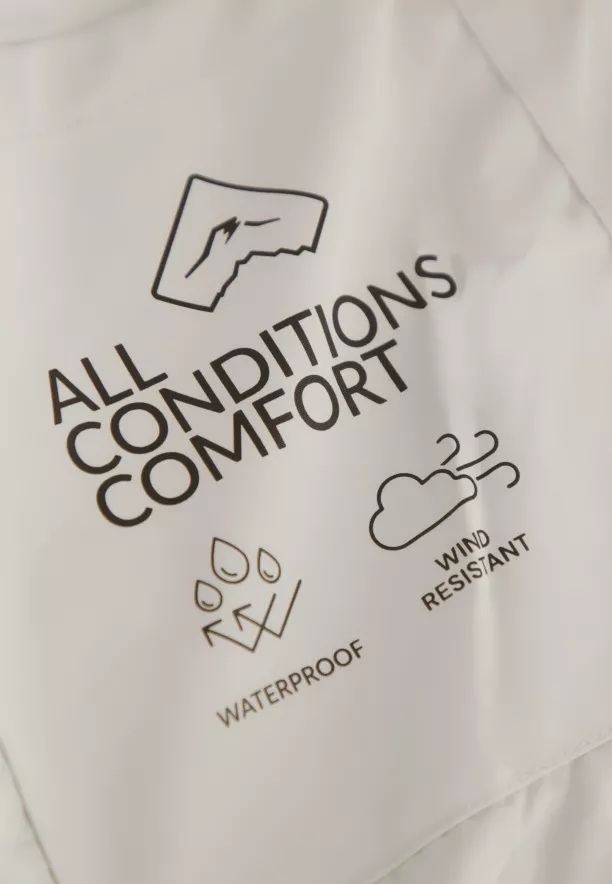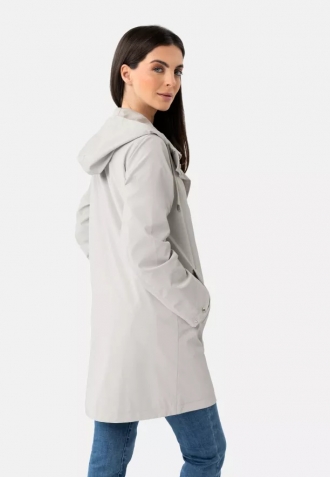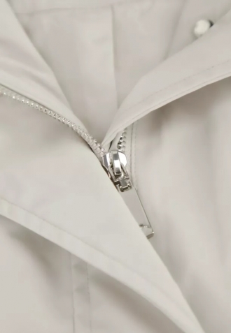 Elegantní, lehký kabát s moderním a nadčasovým střihem je ideální volbou pro přechodné období. Je vyroben z odolného materiálu, který chrání před větrem a chladem, a zároveň zajišťuje pohodlí při celodenním nošení. Materiál je hladký a má krémovou barvu. Rovný střih s volným spodním lemem skvěle sedí na postavě, neomezuje v pohybu a praktická kapuce se šňůrkami, diskrétní zapínání na zip a funkční kapsy podtrhují jeho univerzální a městský charakter.
