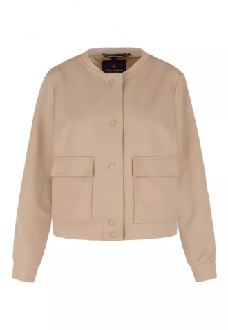 Model J-KALIA je látková dámská bunda, která vyniká rovným krátkým střihem a límcem v baseballovém stylu, jenž jí dodává sportovní charakter. Bunda se zapíná na druky, což umožňuje rychlé a pohodlné oblékání. Volný látkový lem ve spodní části a na manžetách dodává celku ležérní look a dvě našité kapsy s ozdobnými chlopněmi doplňují funkčnost a styl.