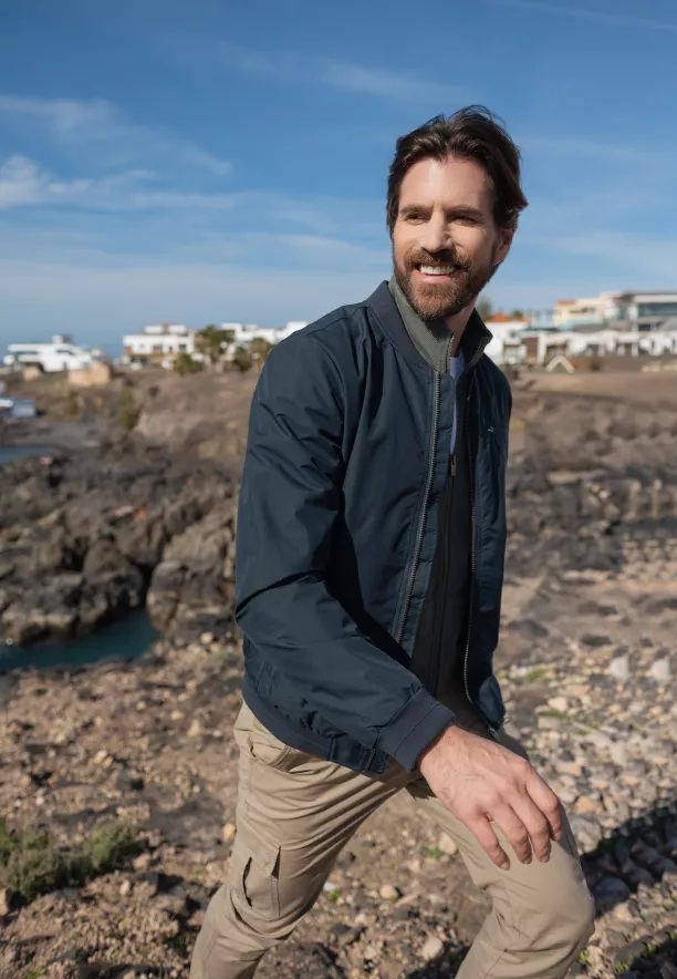 Funkčnost je další předností této přechodné bundy. Pánská bunda má dvě praktické boční kapsy, náprsní kapsu na zip a dodatečnou vnitřní kapsu, ideální na telefon nebo doklady. Komfort nošení zvyšuje podšívka, zatímco manžety rukávů a spodní část bundy zakončená žebrovaným lemem zajišťují dobré přizpůsobení a ochranu před chladem. Pokud hledáte univerzální, pohodlnou a stylovou variantu pro přechodné období, bude tato bunda bomber vynikající volbou.