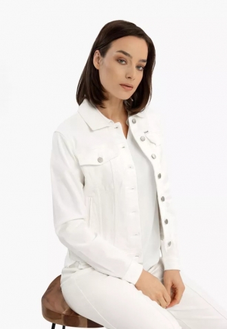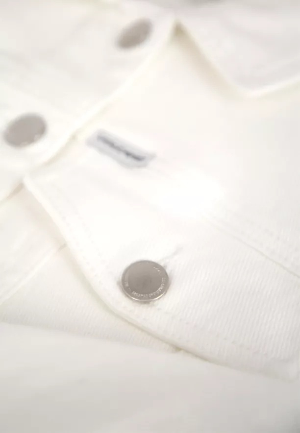 Klasická dámská džínová bunda v novém provedení. Bunda J-NALA je přiléhavá, krátká džínová bunda v krémové barvě. Jedná se o džínovou katanu v basic-stylu, se zapínáním na knoflíky, s kapsami na hrudi a dvěma otevřenými kapsami na bocích.