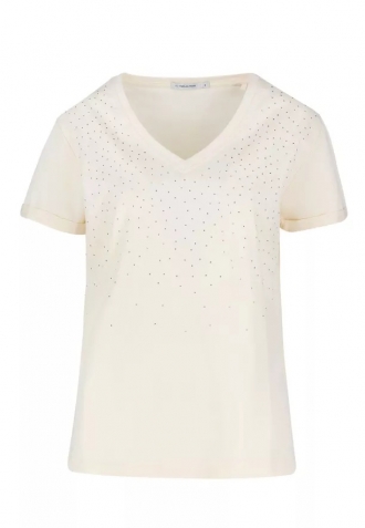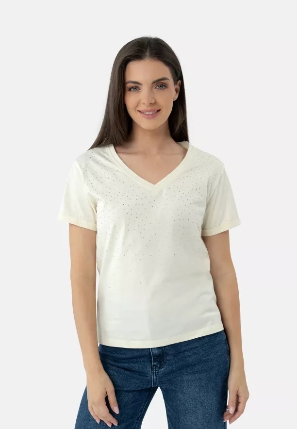 Krémové dámské tričko s kamínky