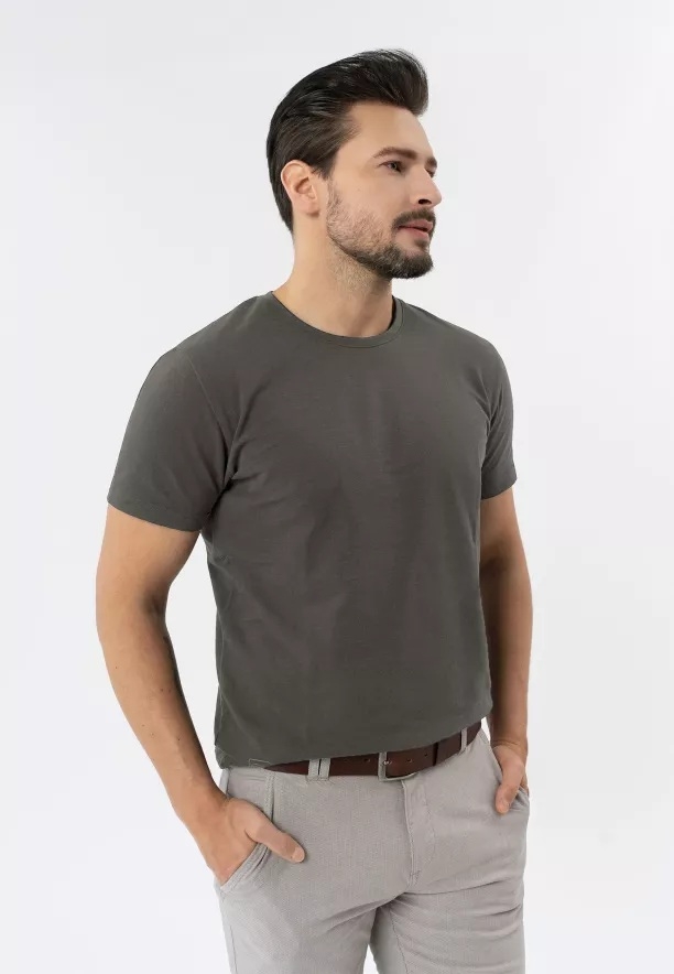 T-shirt v grafitové barvě byl ušit v klasickém střihu Regular Fit, díky čemuž zvýrazňuje postavu, ale nepne se. Navíc zajišťuje odpovídající ventilaci vzduchu. Basic t-shirt se ideálně hodí k prakticky jakémukoliv stylingu a tvoří nezbytný prvek pánského šatníku.