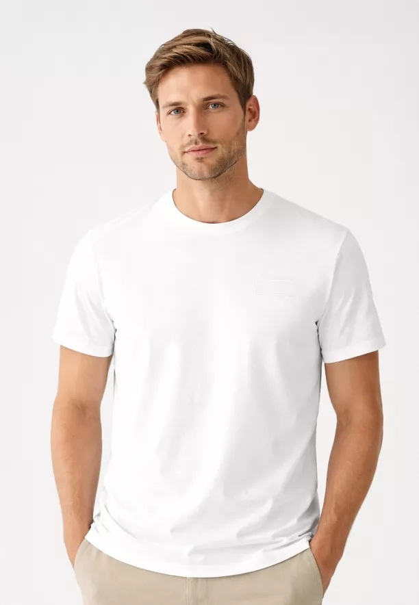 Minimalistické, hladké pánské tričko vyrobené z mercerované bavlny. Proces mercerace činí materiál výjimečně hladkým, měkkým a příjemným na dotek, a zároveň odolnějším vůči opotřebení a ztrátě barvy. Tkanina získává jemný, ušlechtilý lesk, díky čemuž tento klasický basic model působí elegantněji než standardní bavlněné tričko. Je to ideální základ šatníku – prodyšný, pohodlný a propracovaný v každém detailu. Tričko má střih Comfort, který zajišťuje svobodu pohybu a pohodlné nošení bez pocitu pnutí. Jednoduchý střih podtrhuje univerzální charakter trička, které se skvěle osvědčí jak samostatně, tak pod sakem nebo mikinou. Toto tričko je esencí minimalismu – čistá forma, absence zbytečných doplňků a nadčasový styl, který lze snadno sladit s každodenními ležérními outfity.