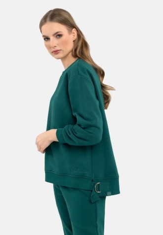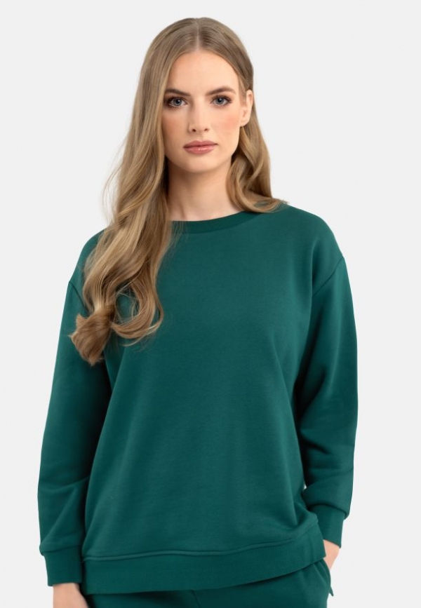 Zelená dámská oversize mikina B-PAOLA je módním hitem. Mikina bez kapuce je vyrobena z měkkého a kvalitního materiálu, z vnitřní strany zakončena poutky (francouzské froté). Díky použití směsi bavlny a polyesteru mikina umožňuje pokožce dýchat a zároveň je pevná a odolná proti roztažení. Díky tomu jej lze často prát a žehlit a neztratí svůj tvar a vlastnosti.