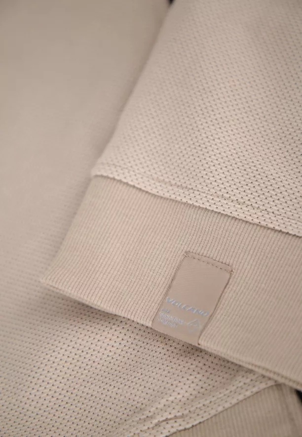 Naši designéři navrhli tuto mikinu se stojáčkem, nikoli s kapucí. Stojáček, tedy vysoký límec, má mnoho výhod. Jednou z nich je, že velmi dobře chrání krk v chladnějších dnech. Mikina je ušita ze 100% bavlny, takže je prodyšná a dobře absorbuje vlhkost. Další její výhodou je, že se zapíná na zip. Toto řešení je ideální pro osoby, které mají rády teplotní komfort. Model s výškou 183 cm představuje produkt ve velikosti L.