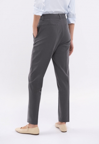 R-MARSA je variací na téma dámských oblekových kalhot. Od oblekových kalhot je odlišuje měkká a pružná látka, která příjemně sedí na těle. Na druhou stranu šedá barva a lem na nohavicích dodávají dámským kalhotám formálnější a elegantnější charakter.