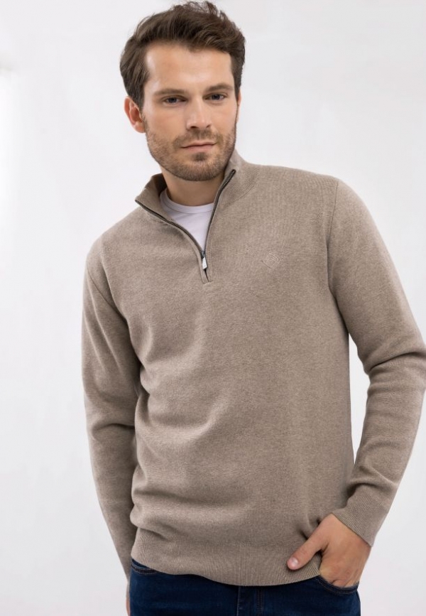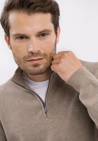 Pro příznivce stojatého límce jako výstřihu máme dobrou zprávu - můžete si koupit svetr se stojatým límcem. Jedná se o béžový svetr S-CARLO zakončený stojáčkem. Jedná se o funkční detail, který nejenže dodává eleganci, ale také umožňuje tepelnou regulaci v závislosti na počasí. Spodní část a manžety svetru jsou zakončeny žebrovaným lemem, který dokonale padne.