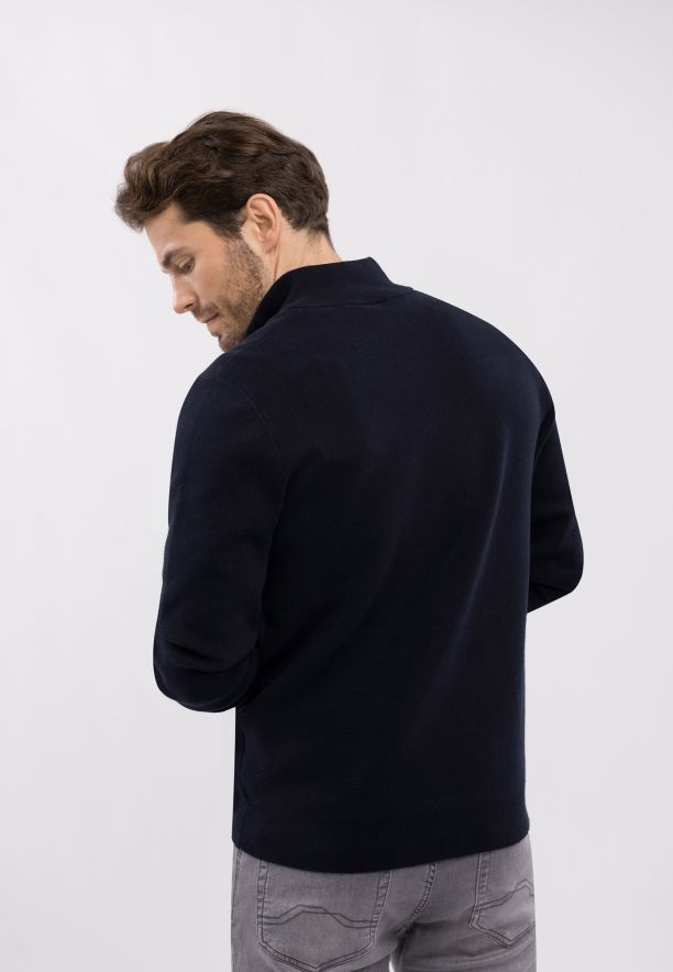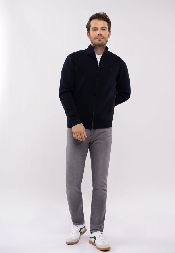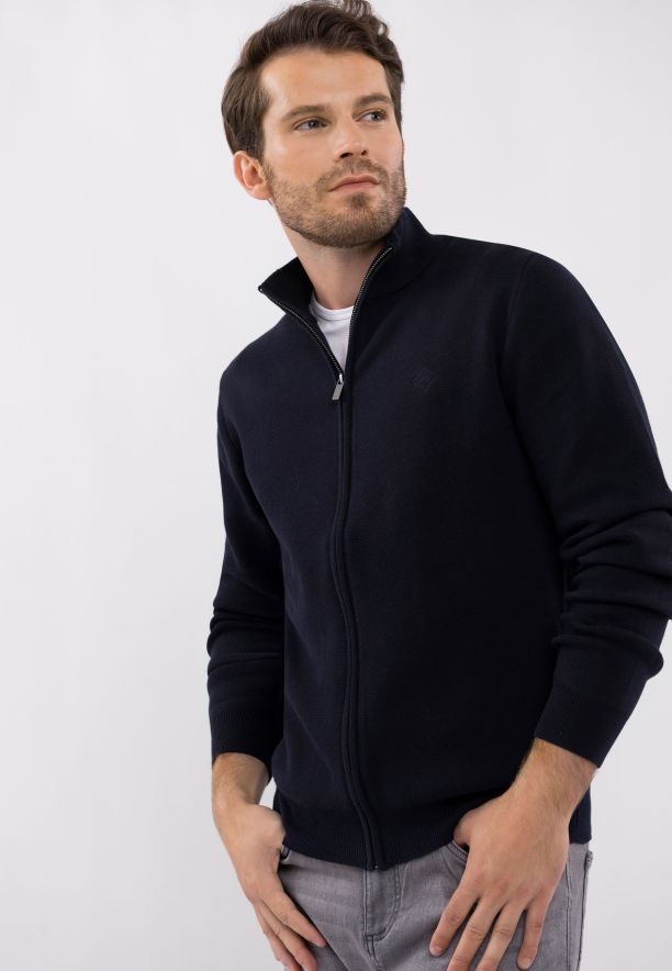 Pánský svetr S-NATAN se zapíná na kovový zip, který usnadňuje oblékání a svlékání a také umožňuje regulaci teploty. Stojatý límec dodává svetru eleganci a ochranu před chladem, takže je praktickou volbou pro všechna roční období. Mezitím lem a manžety s žebrováním zajišťují dokonalé přizpůsobení a zabraňují shrnování látky. Tento typ svetru lze nosit různými způsoby, například přes košili, tričko nebo rolák.